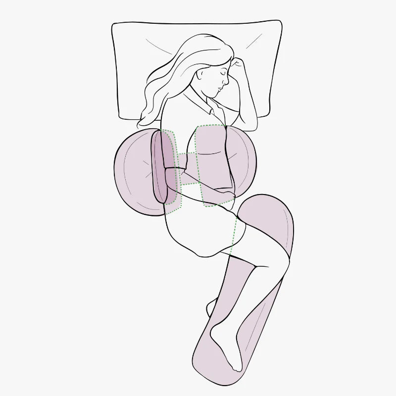 Il supporto per il pancione aiuta a ridurre la sensazione di sprofondamento nel materasso, mentre il cuscino posteriore aiuta a prevenire di rotolare sulla schiena, garantendo un sonno più riposante.